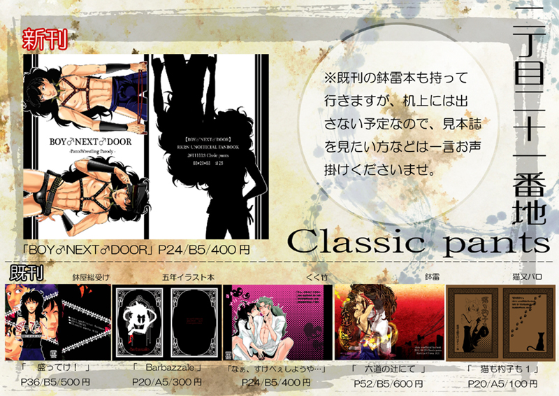 新刊のBOY♂NEXT♂DOORは、五忍で再版予定なのでそちらもよろしくお願いします~^^冬コミも近いので、書店委託は今のところ予定しておりません。